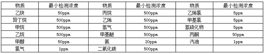 可燃?xì)怏w探測器是一種工業(yè)用的高性能寬波段燃?xì)鈾z漏儀,有6個(gè)漏氣量目測燈,顯示燈隨漏氣量增大而按順序點(diǎn)亮??捎糜跈z測烴(甲烷、乙烷、丙烷、苯、乙炔、丁烷、正丁烷、異丁烷、戊烷、已烷、汽油,甲苯等),鹵代烴(氯代甲烷、亞甲基氯、三氯乙烷、氯乙烯),醇類(甲醇、乙醇、丙醇),醚(甲醚),酮(丁酮、丙酮),乙酸甲酯和其它化合物(氫氣、二氧化硫、氨、硫化氫,工業(yè)溶劑,干清洗液等)。按檢測原理分類通常有四種,分別為: 熱導(dǎo)型、半導(dǎo)體型、催化燃燒型( 接觸燃燒) 和紅外線吸收型。